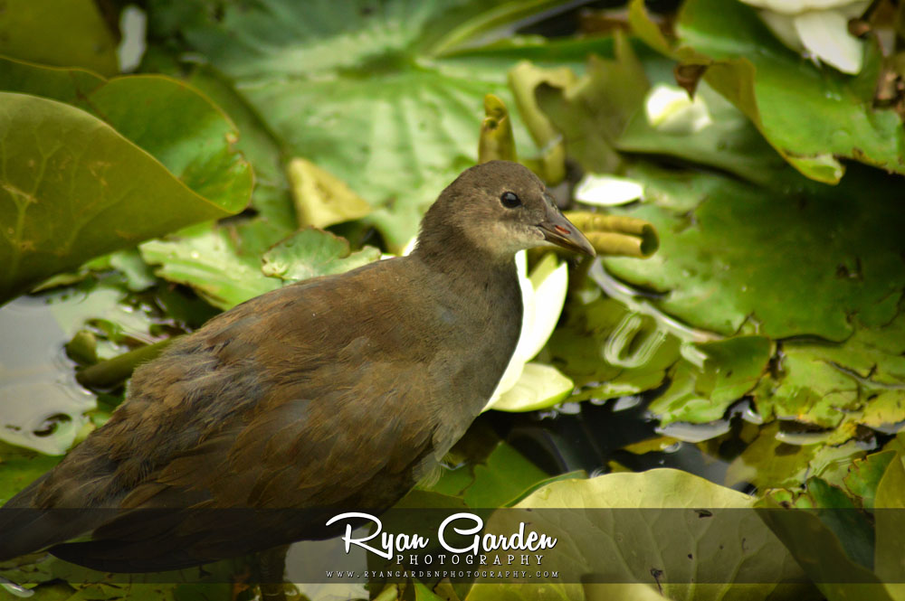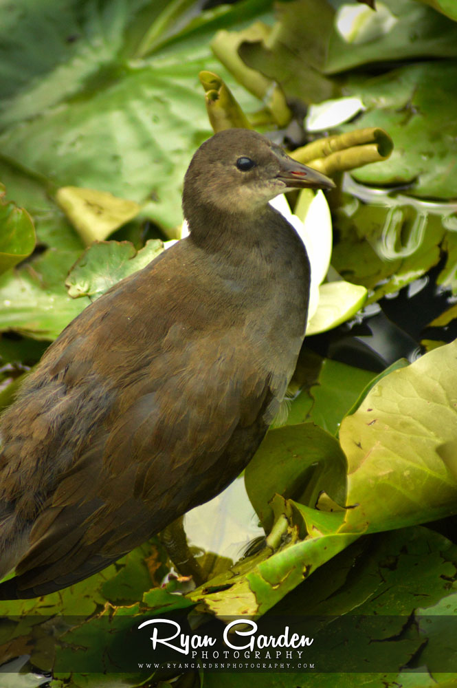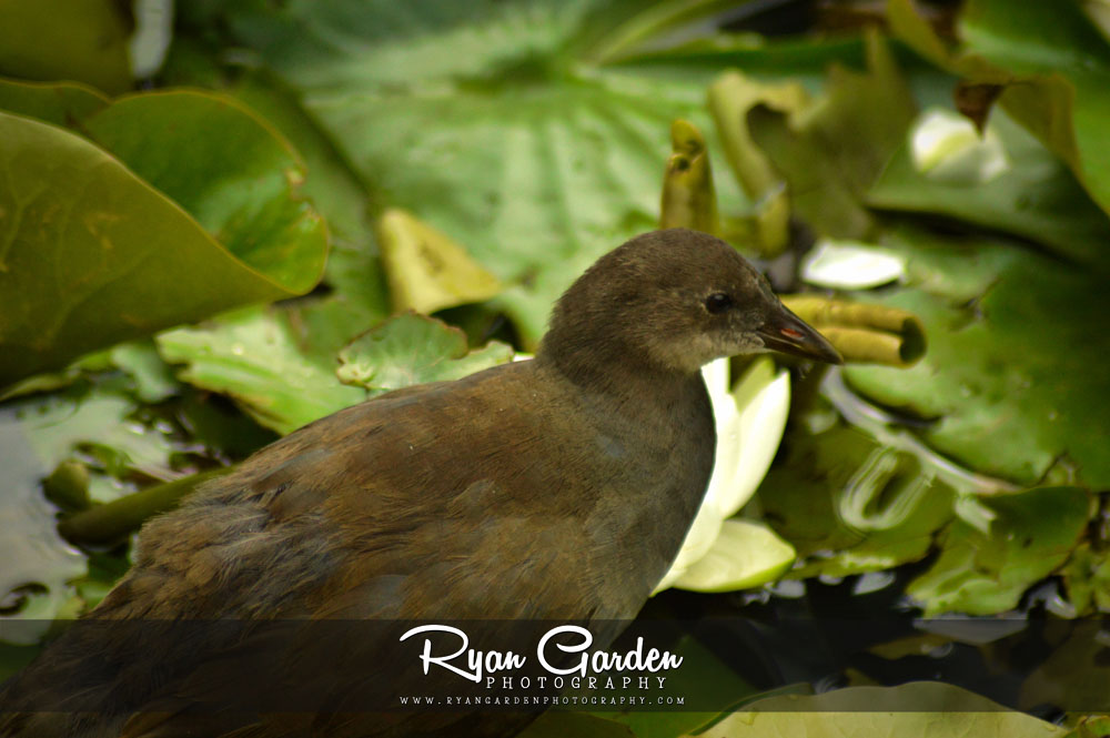 I spotted this little fellow (which I believe is a Bush Hen) wading through some Lilly pads. He seemed to be a little lost as he was constantly calling out to I assume his mother and other siblings who were further out on the pond. It Looked as though he went adventuring on his own (little rascal) then lost sight of his family group. Thankfully while I watched and photographed him he finally found his way back to the others.