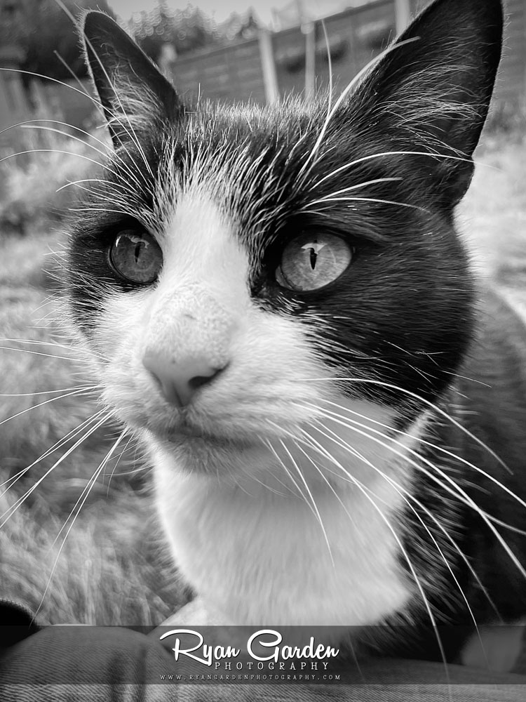 My photographs of the fuzzy one are a slight departure from my usual nature & wildlife photography. I’d say they are more snapshots/documentary in style. These particular shots were taken last year during one of our many afternoons relaxing in the garden with the fuzzy one. Although these days we do allow her to venture into the house , she’s very much content with her kingdom that is our back garden & shed.